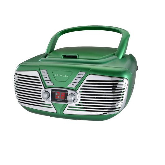Restocking Soon! More is on the way!Proscan Portable Retro CD Boombox with AM/FM Radio - Green