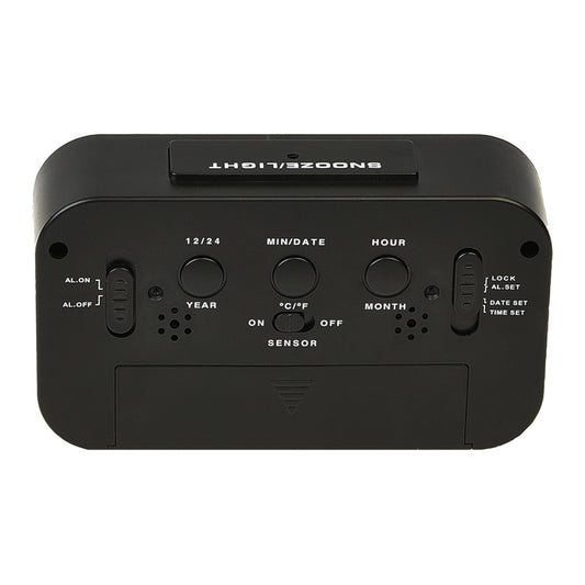 RCA Portable Alarm Clock with Auto Night Light Sensor, Temperature & Calendar - Black