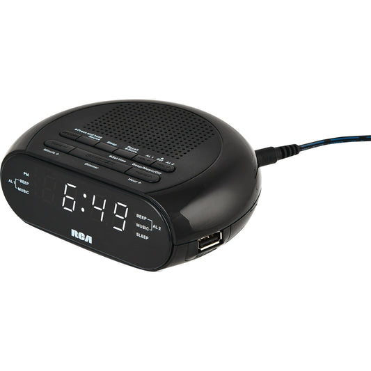 RCA Soothing Sounds Alarm Clock Radio with USB Charging - Black