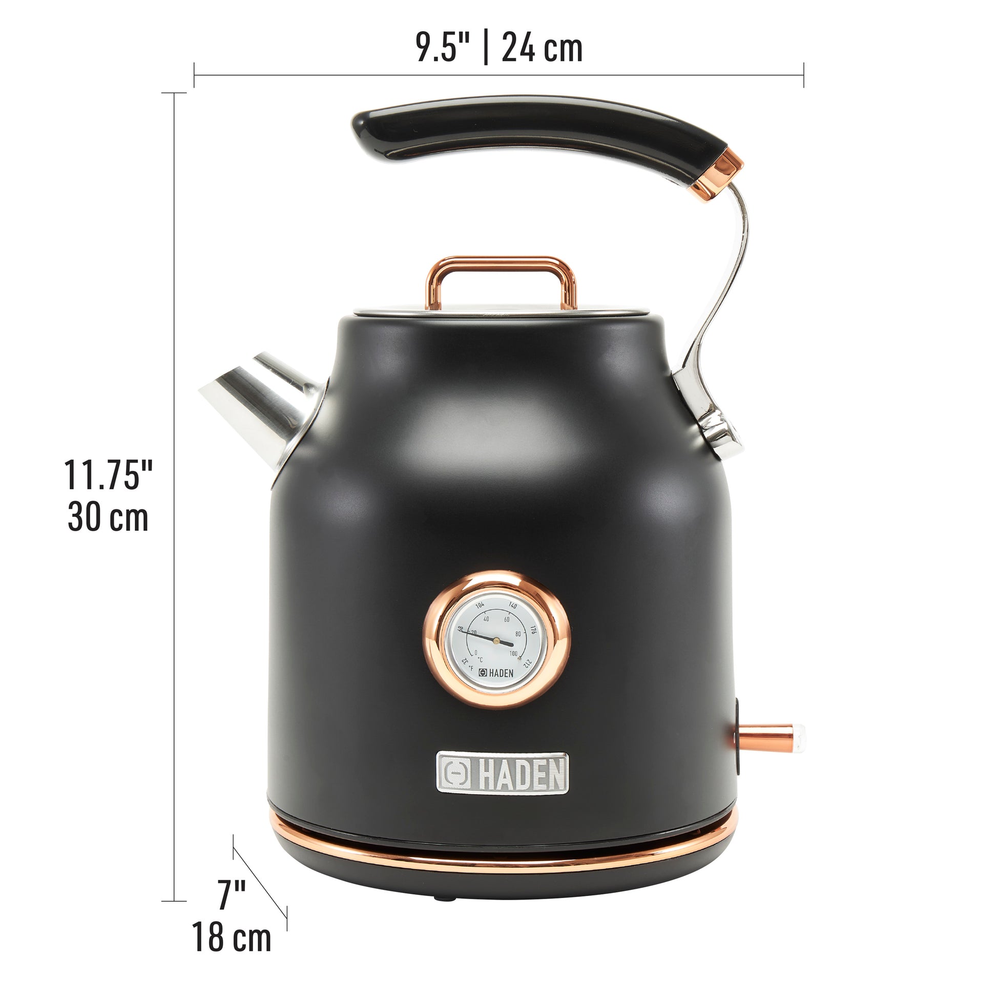Made with high-grade BPA-free & stainless-steel material, this fast boil electric kettle contains a boil dry cut-off protection, preventing accidents if left unattended for an extended time. Showcasing a stylish temperature gauge to make the perfect cuppa, this kettle is made to impress. Aesthetically designed with rounded and retro lines to fit contemporary and modern kitchens. Match up your kettle with Haden Dorset Black & Copper to create a set that uplift your decor.