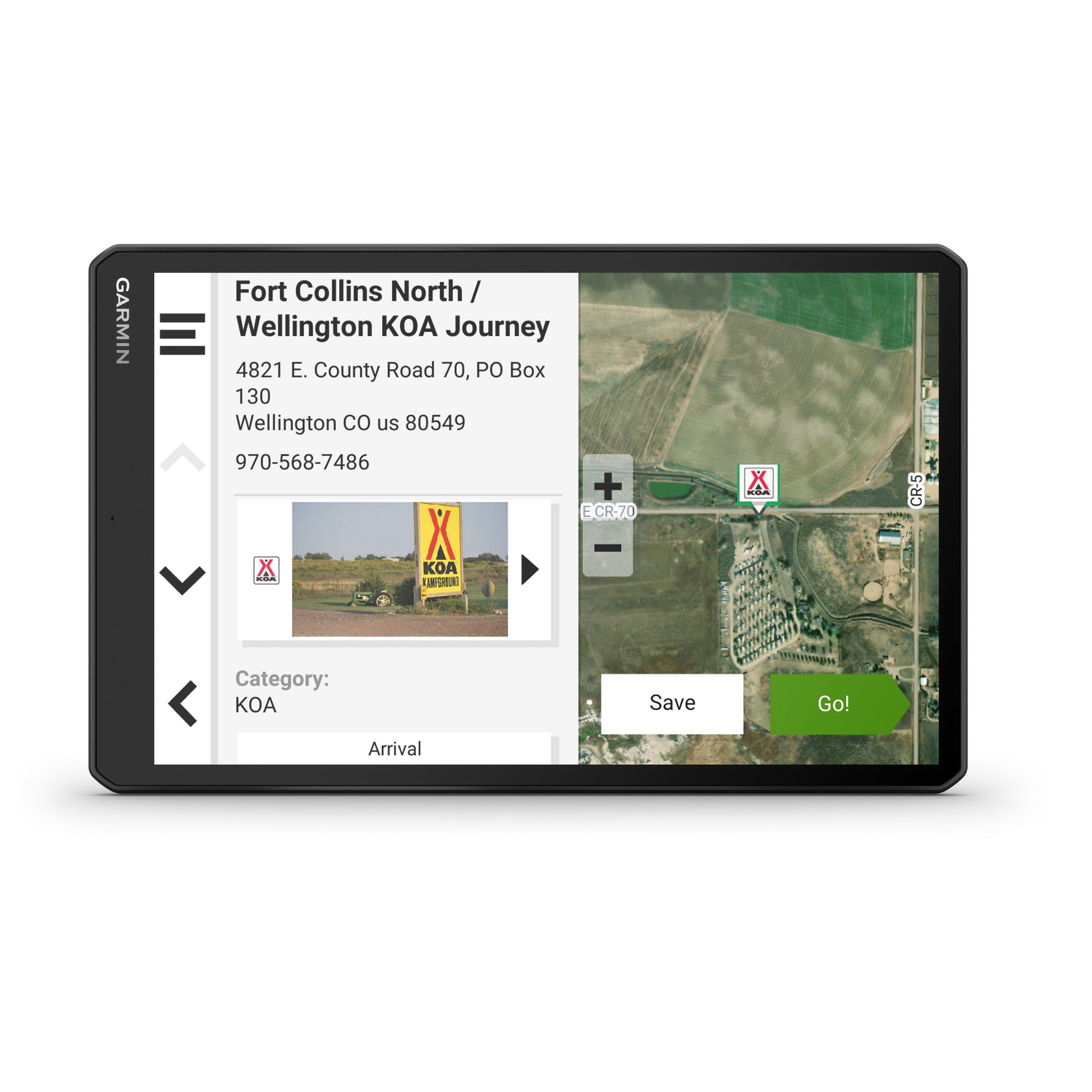 Plan to make memories with the RV 1095 series navigator from Garmin, featuring a large 10” display and including map updates of North America. Get custom routing for the size and weight of your rig — with road warnings for steep grades, sharp curves and more. Access a directory of RV parks and services, and see suggestions for the best spots along your route and activities to try around your destination. Plus, enjoy BirdsEye Satellite Imagery, which shows vivid aerial views to help you have a smooth arrival at your RV park or campground.