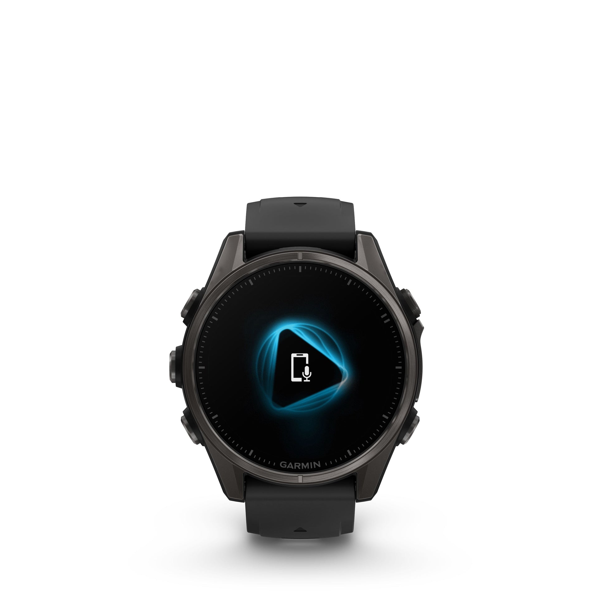Garmin fēnix® 8 AMOLED Display Sapphire Lens GPS Smartwatch - 43-mm - Carbon Grey DLC Titanium Bezel with Black/Pebble Grey Silicone Band