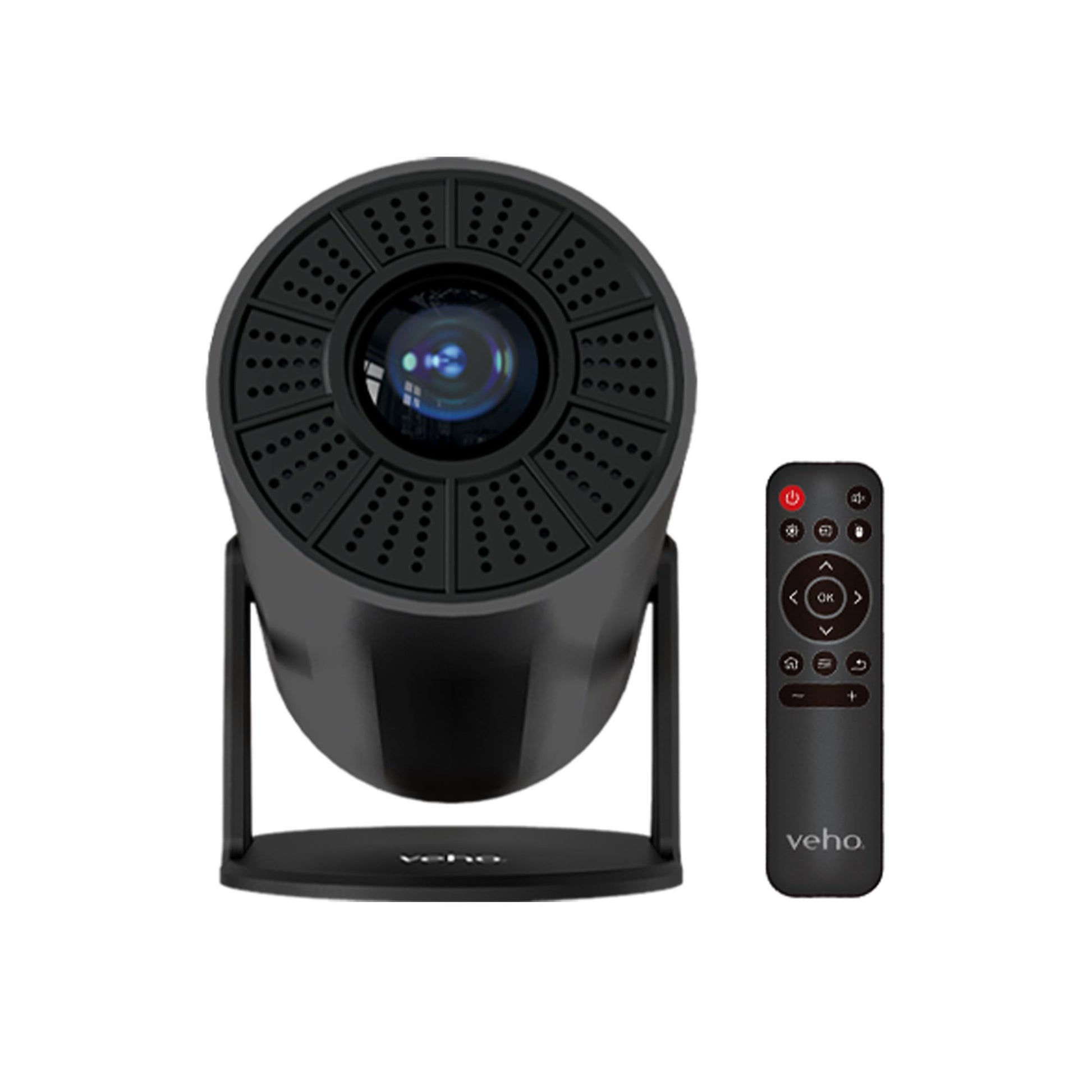 The Veho Quda PJ-1 ROHM projector is a home cinema in a pocket featuring a TX-3 Pro triple layer glass lens for superior performance. Built-in Android TV allows access to a wide range of Apps and content. Watch movies & stream TV in Full HD 1080p and 4K supported playback, Wi-Fi 6 ensures an easy, fast connection. Supports screen mirroring. Includes remote control and a high quality carry bag to transport your Quda ROHM on the go. The Quda ROHM also includes a multi-regional plug, making it a travel essential.