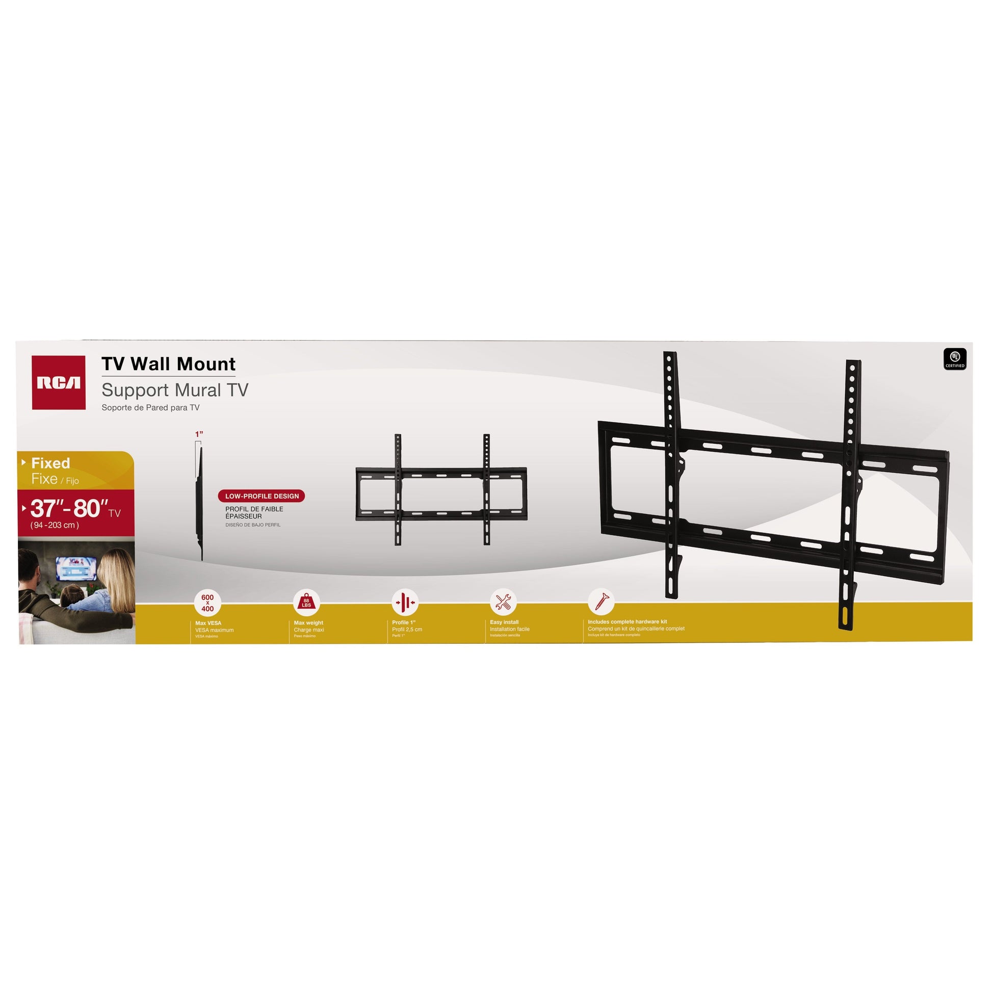 RCA's Fixed TV Wall Mount allows you to kick back and enjoy your TV time worry-free. This wall mount is specially designed to be low-profile for that sleek look with your TV close to the wall. It's easy to assemble with lateral shift brackets to enable fast alignment, plus included security screws for additional support. This sturdy TV wall mount fits screen size 37-80" and supports up to 88 lbs. It's UL certified for strength, safety and quality assurance. Easily install it yourself; the instruction manual and complete hardware kit are included. Get the complete TV upgrade you deserve!